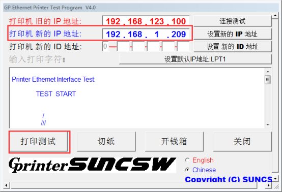 - 首先查看打印机原始IP地址(配置打印机IP的电脑要暂时同打印机原始IP设置一致):关闭打印机后面的电源开关,按住打印机上面的键同时打开开关,放开按键后即可打印出一张关于打印机信息的单据: